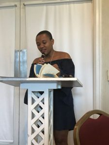 Flose wowed the audience with emotionally charged poems from her published book, Close Your Eyes, Now Breathe. Her poetry about love, loss, Caribbean culture, sexual trauma, politics and feminism brought tears and cheers from the audience.
